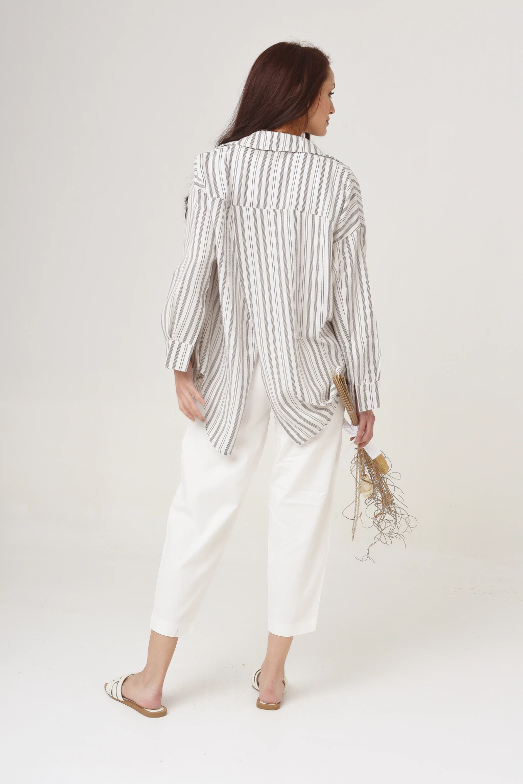 Camisa Jamaica: Frescura y estilo para esta temporada Confeccionada en lino, la Camisa Jamaica es la opción ideal para quienes buscan comodidad y elegancia. Su corte oversize ofrece libertad de movimiento y un look relajado, mientras que el delicado detalle de espalda cruzada aporta un toque distintivo y moderno. Perfecta para sumar frescura a tu guardarropa esta temporada. ¡Elegí tu talle y disfrutá de la combinación perfecta entre estilo y confort!